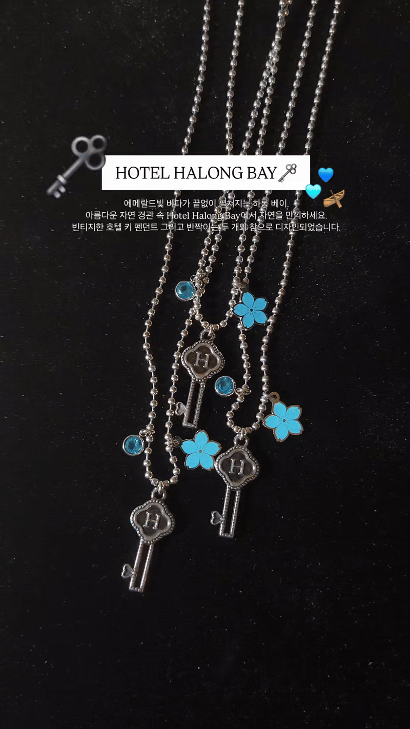 에메랄드빛 바다가 끝없이 펼쳐지는 하롱 베이. 아름다운 자연 경관 속 Hotel Halong Bay에서 자연을 만끽하세요. 빈티지한 호텔 키 펜던트 그리고 반짝이는 두 개의 참으로 디자인되었습니다.