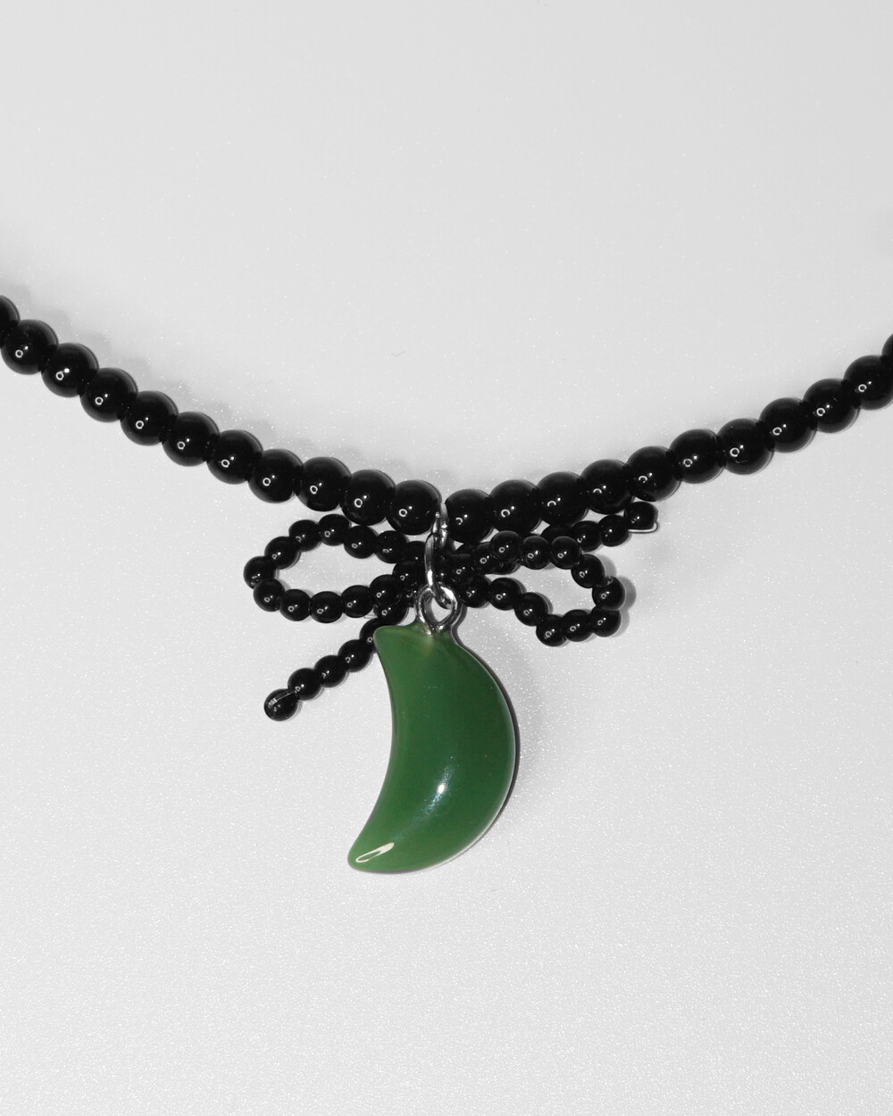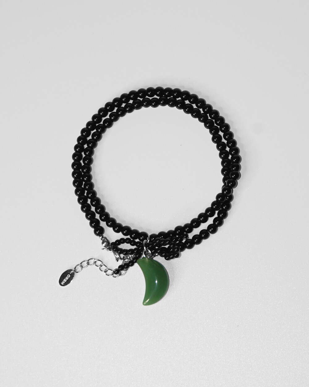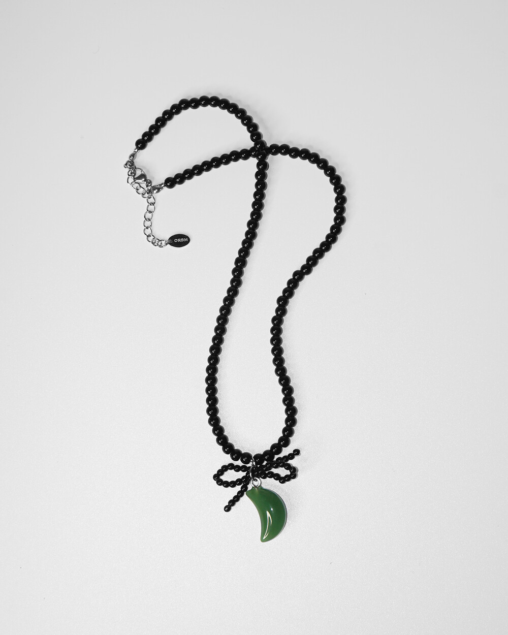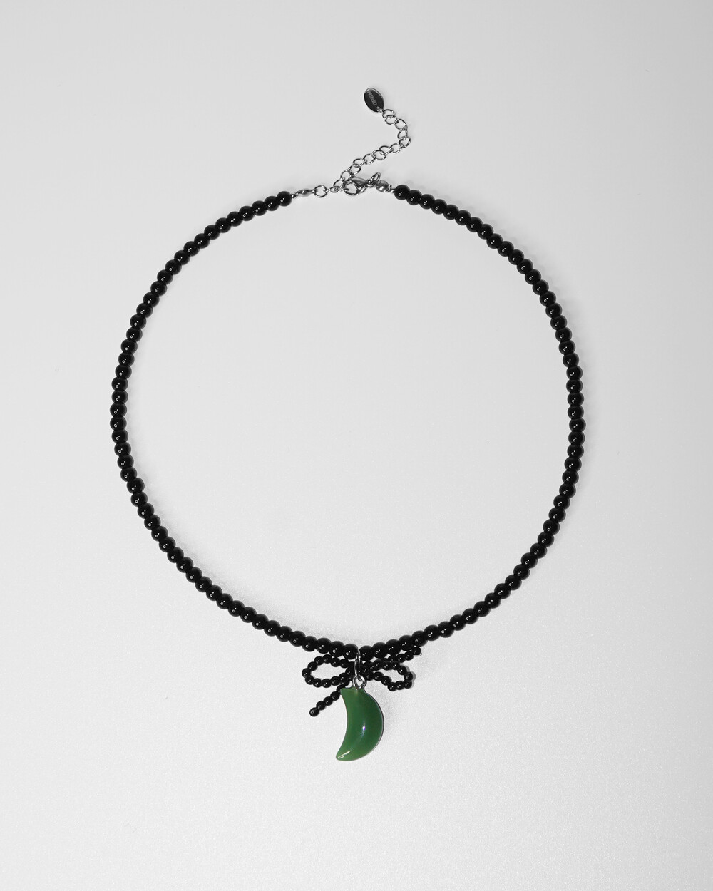 블랙 네크리스에 옥 빛 달 조각을 담은 신비로운 분의기의 JADE PRINCESS.