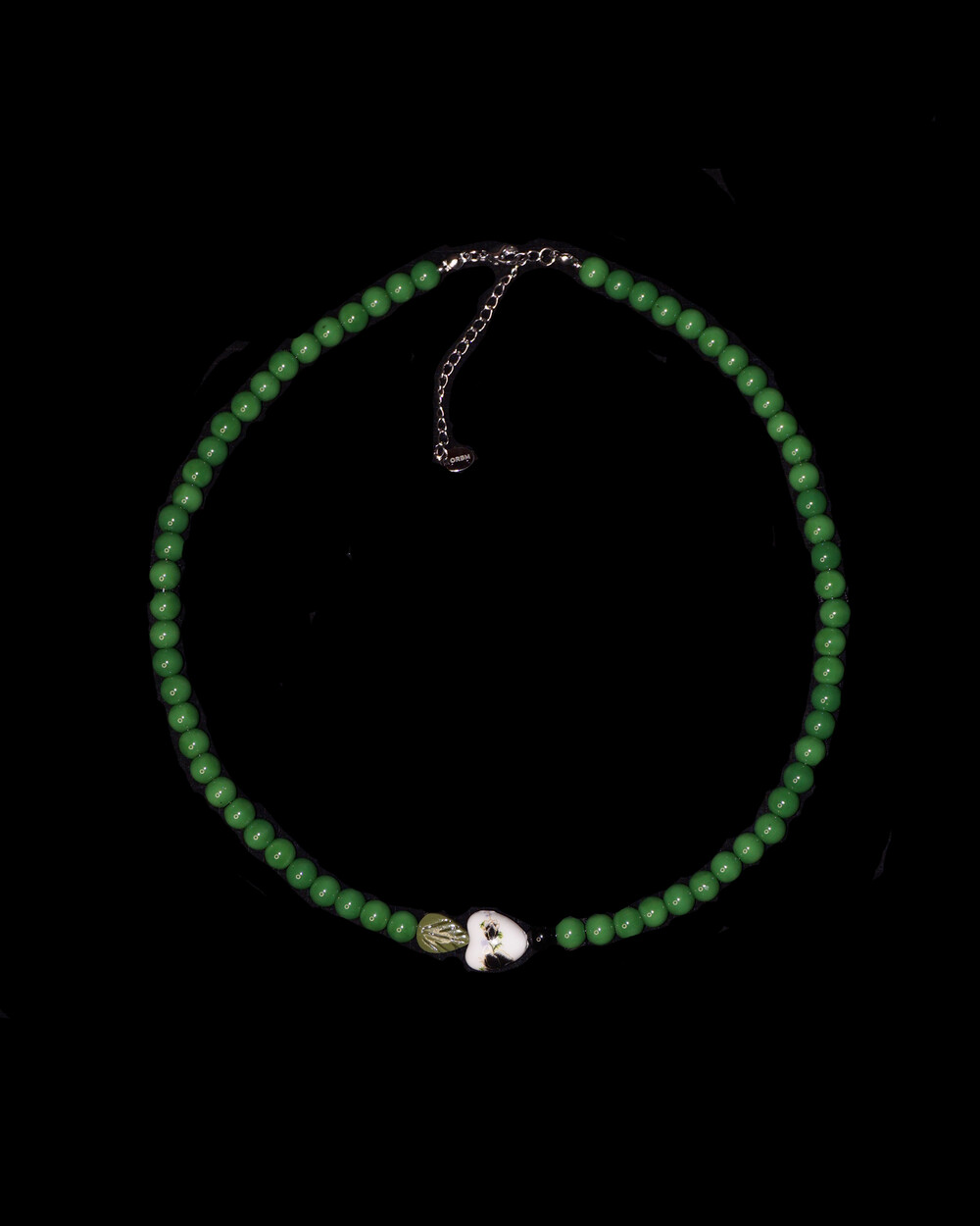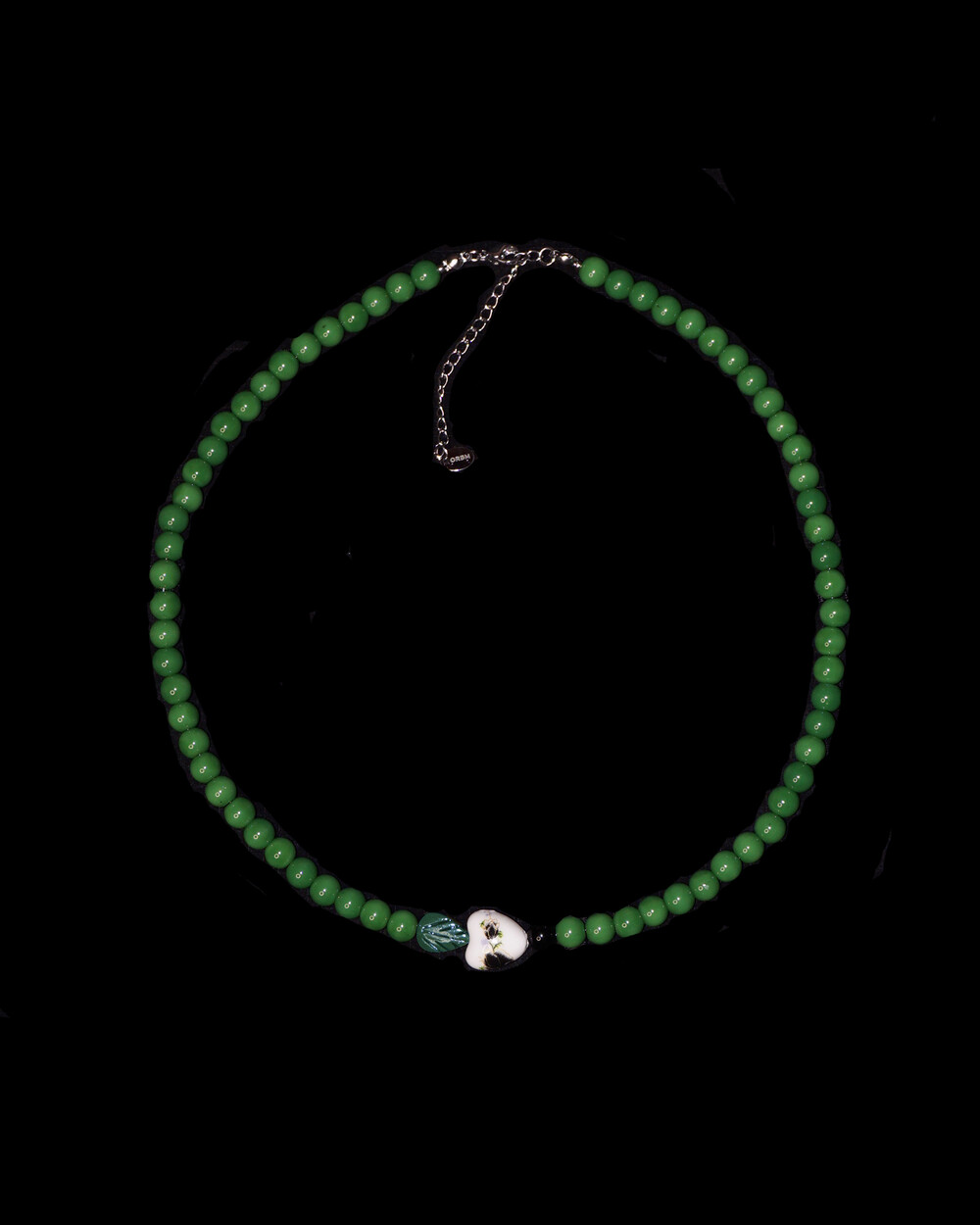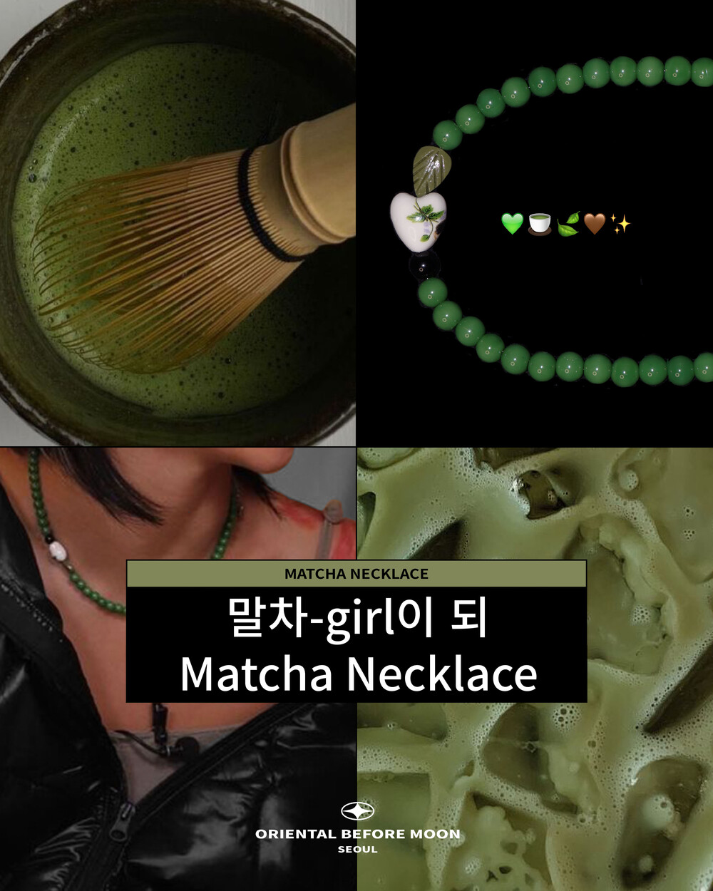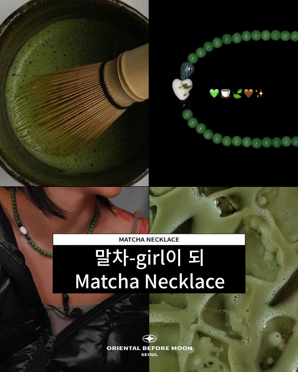 달콤하면서도 쌉싸름한 부드러운 말차 라떼를 연상시키는 MATCHA 네크리스. 차분하지만 칙칙하지 않은 색감의 글라스 비즈와 오리엔탈 무드의 세라믹 펜던트의 조화가 아름답습니다.