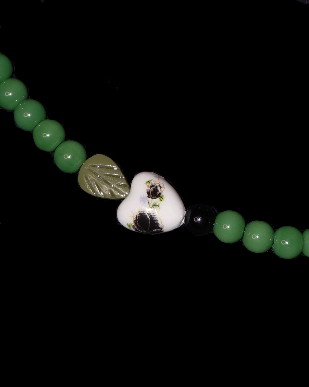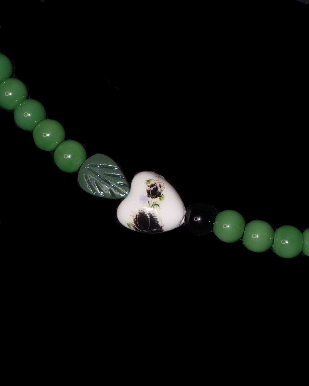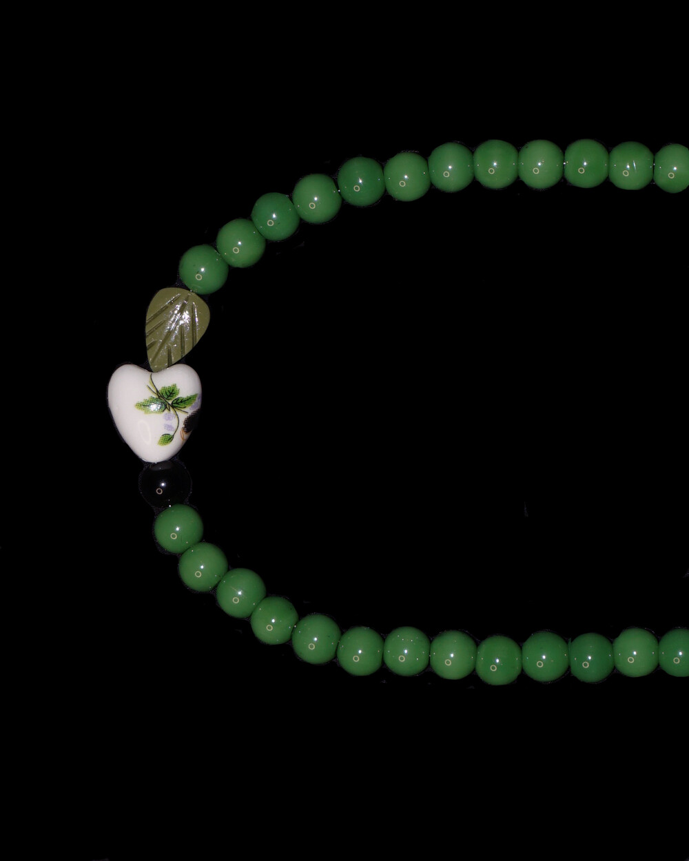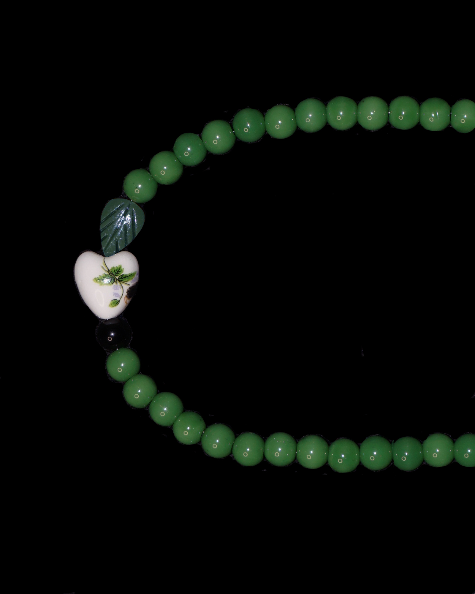달콤하면서도 쌉싸름한 부드러운 말차 라떼를 연상시키는 MATCHA 네크리스. 차분하지만 칙칙하지 않은 색감의 글라스 비즈와 오리엔탈 무드의 세라믹 펜던트의 조화가 아름답습니다.