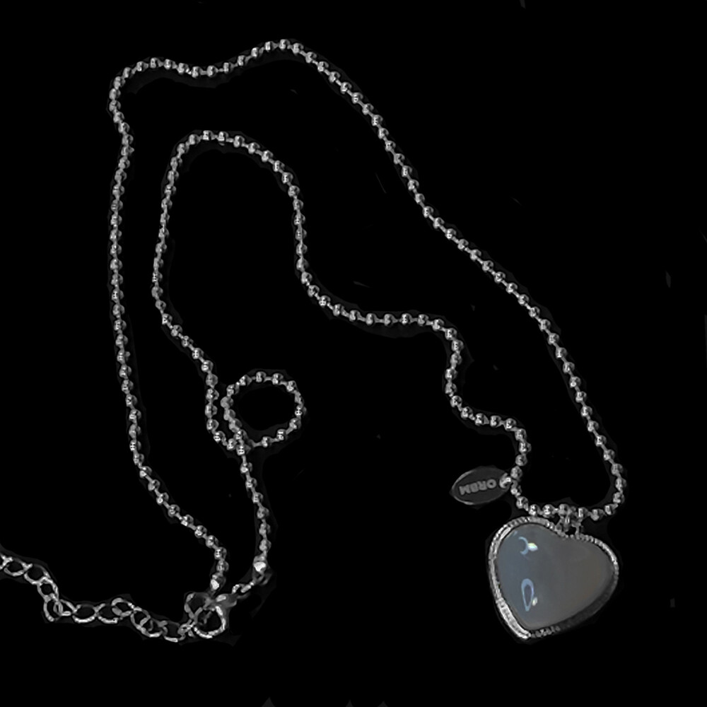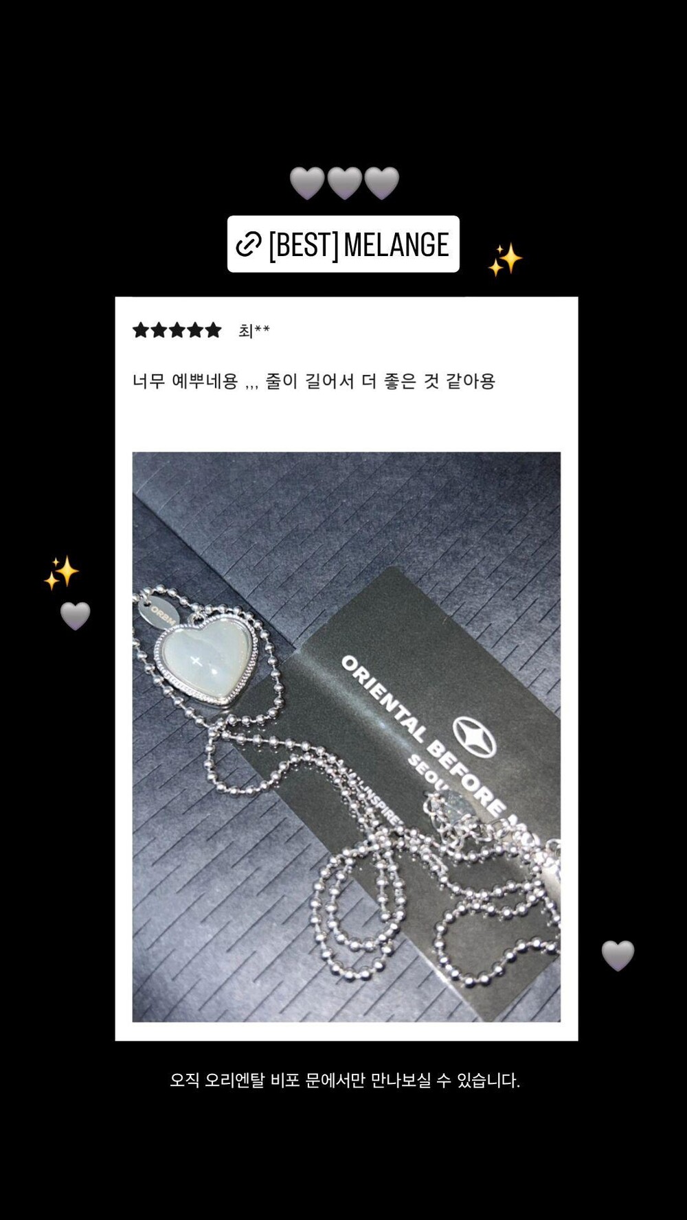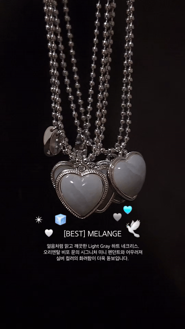 얼음처럼 맑고 깨끗한 Light Gray 하트 네크리스. 오리엔탈 비포 문의 시그니처 미니 펜던트와 어우러져 실버 컬러의 화려함이 더욱 돋보입니다. 실버 네크리스의 정수를 보여주는 세련된 무드로 어느 코디에든 잘 어울립니다.