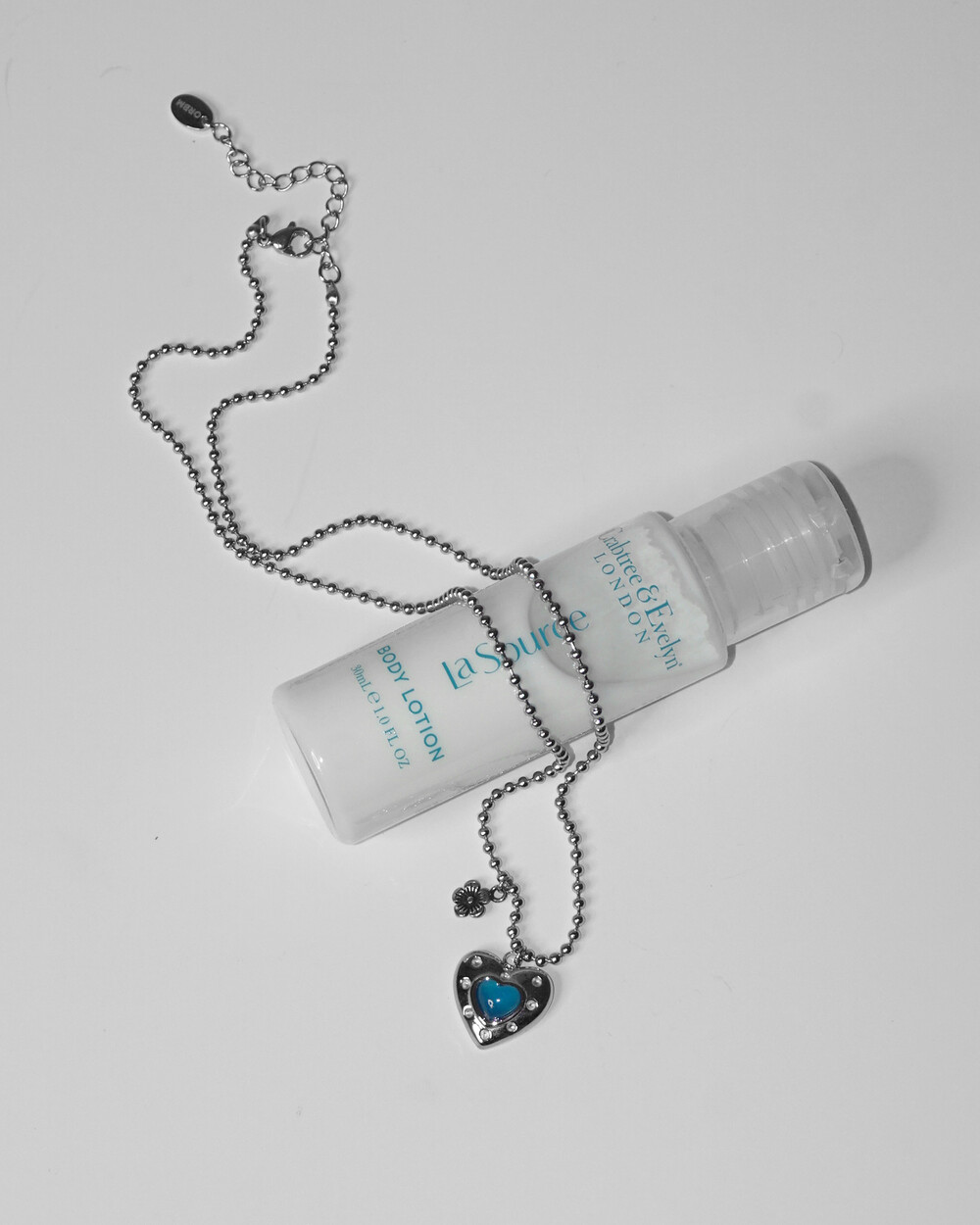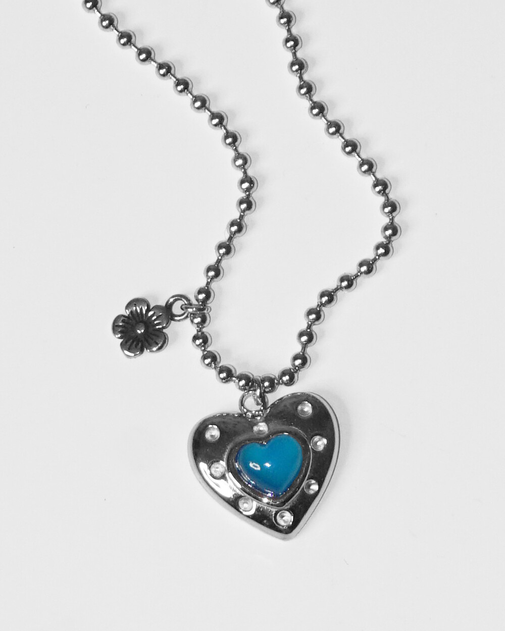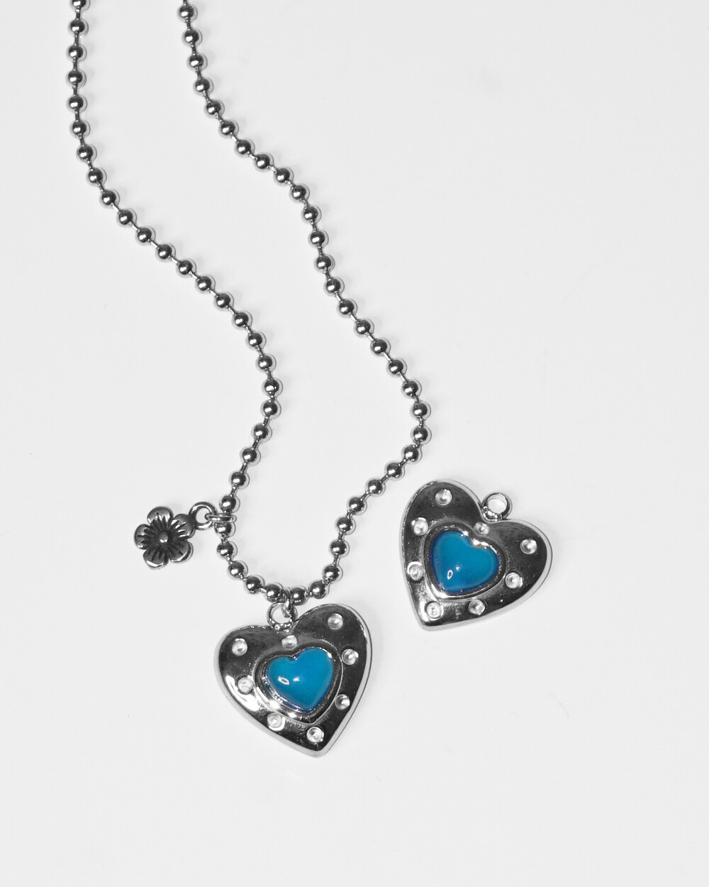 발리에서 맞는 시원한 아침을 담은 네크리스. 터쿼이즈 컬러의 하트 펜던트와 쁘띠 플라워 펜던트의 조합이 휴양지에서의 기분을 상기시켜 줍니다. 자유로우면서도 이국적인 무드로 어느 코디에든 잘 어울립니다. 전체 써지컬 스틸 소재로 더욱 관리가 편합니다.