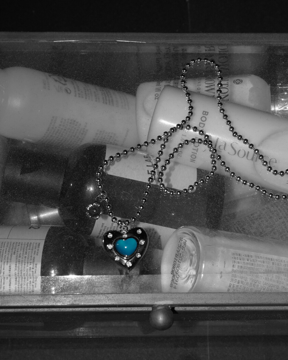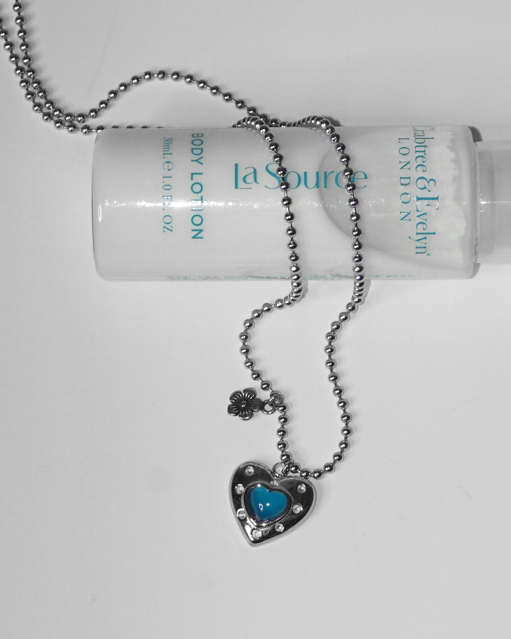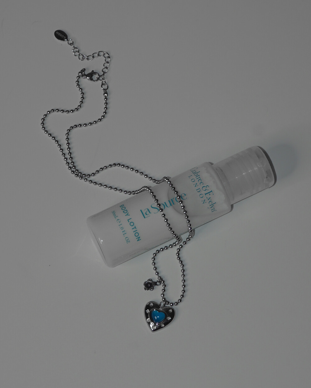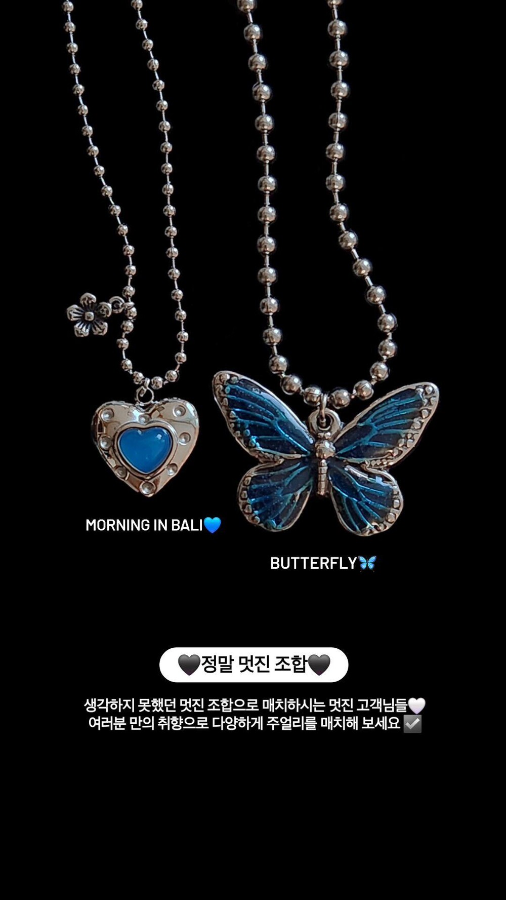 발리에서 맞는 시원한 아침을 담은 네크리스. 터쿼이즈 컬러의 하트 펜던트와 쁘띠 플라워 펜던트의 조합이 휴양지에서의 기분을 상기시켜 줍니다. 자유로우면서도 이국적인 무드로 어느 코디에든 잘 어울립니다. 전체 써지컬 스틸 소재로 더욱 관리가 편합니다.