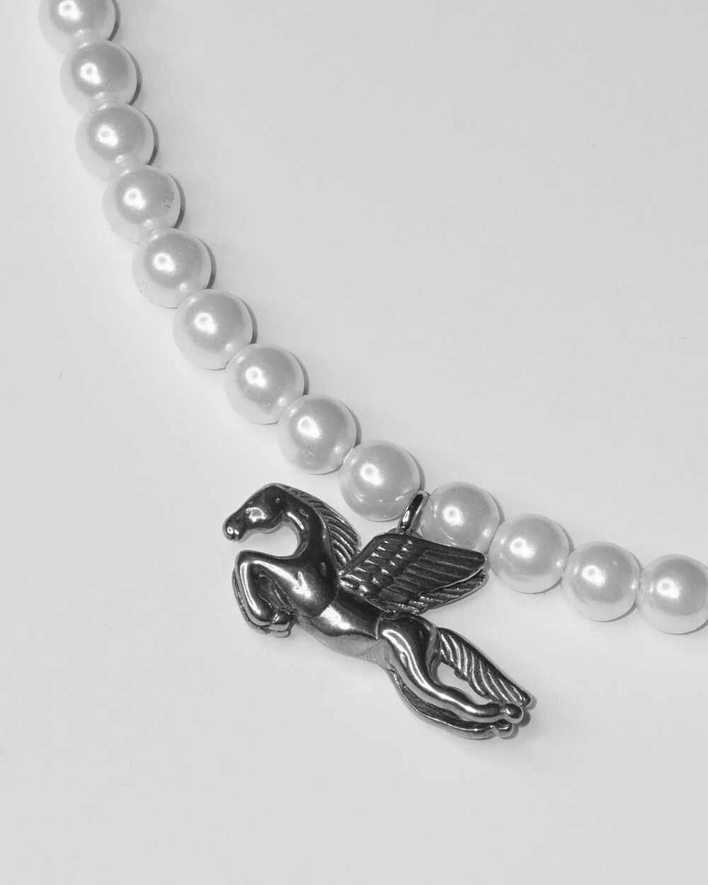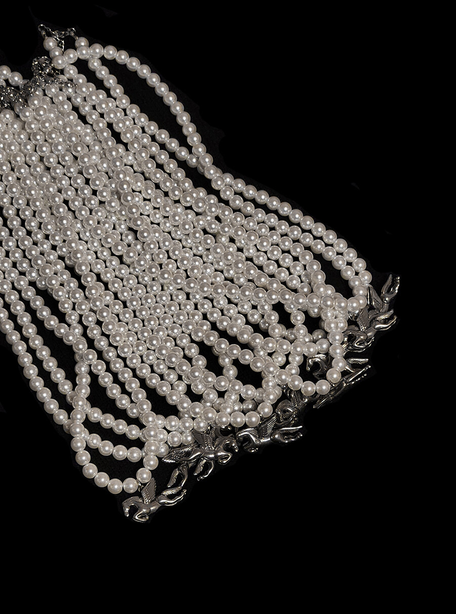 깃털 한 올 한 올 디테일이 살아있는 페가수스와 깨끗한 화이트 진주가 신비롭고 빈티지한 무드를 자아냅니다. 작지만 큰 존재감으로 생동감을 부여하며, 소장 가치 높은 네크리스로 추천합니다.